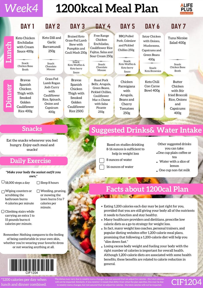 With a daily caloric intake of approximately 1200 calories, this program is ideal for those seeking steady weight loss, weight management, and an active lifestyle.